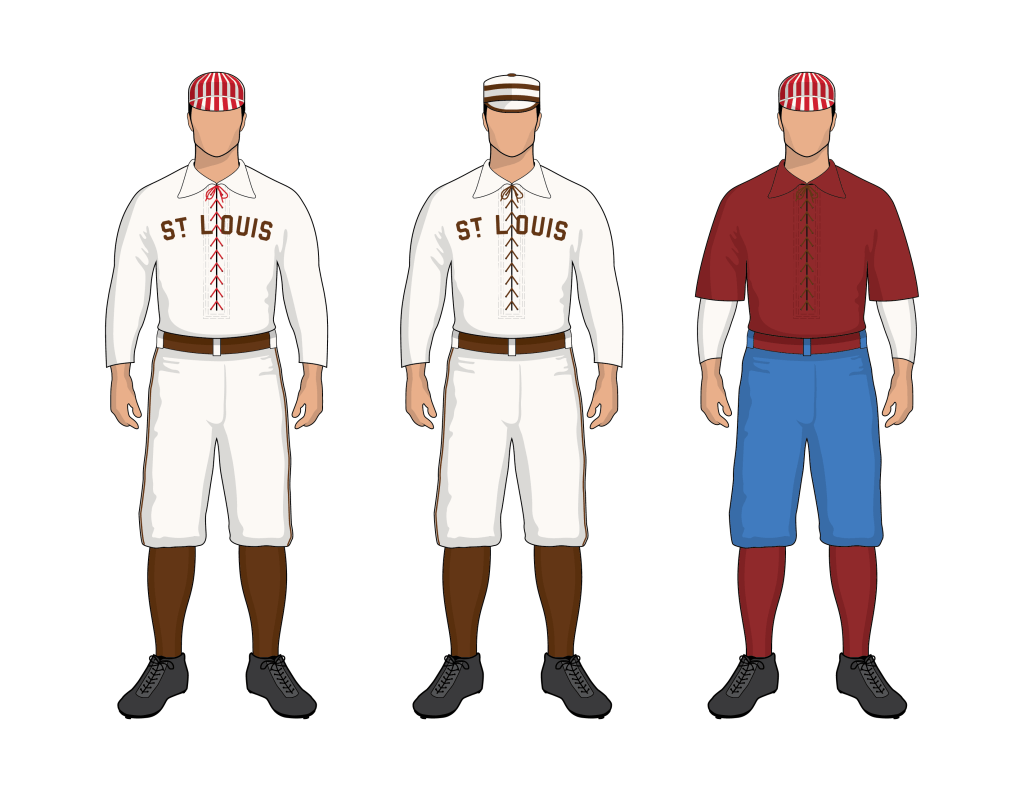 We have plenty of photography, and know at least the first two uniforms were representative of the team. The first uniform on the left looks to be identical to the 1885 uniform, which leads us to believe that it, or something very similar, could have been used in the 1885 Series. Although we’re making that assumption, we have no certainty of that claim. In later years, the team would typically debut new uniforms for the World Series and then wear those uniforms in subsequent seasons. That might not apply to 1885 and 1886 based on what we see.