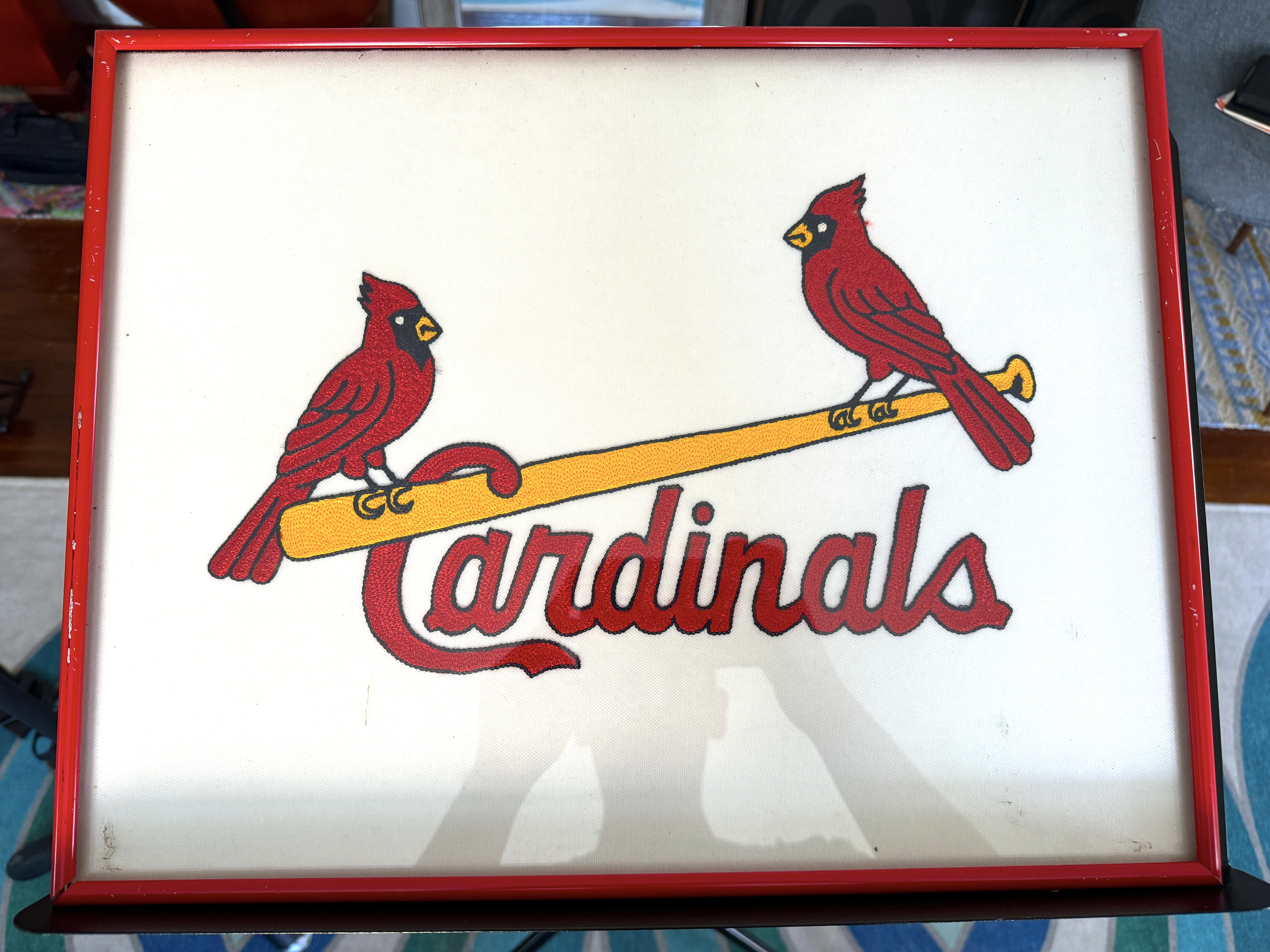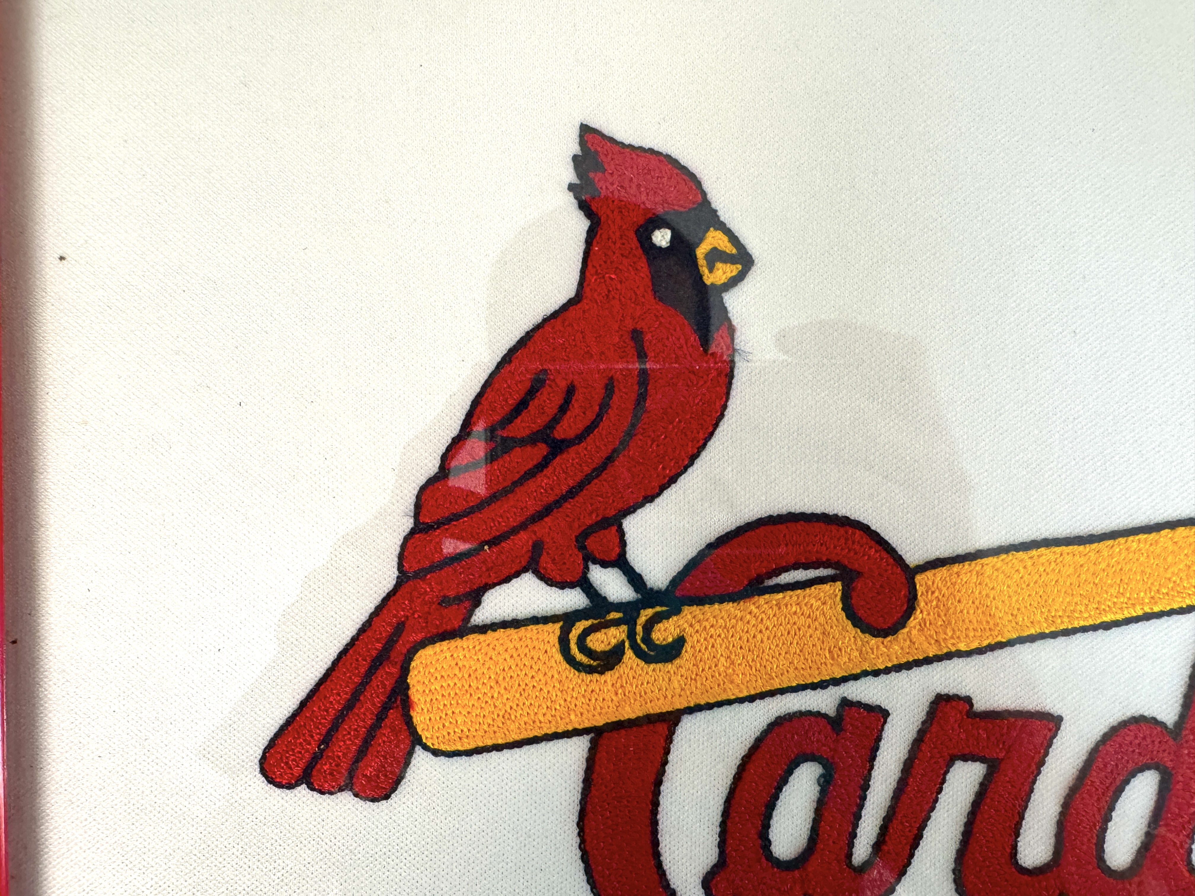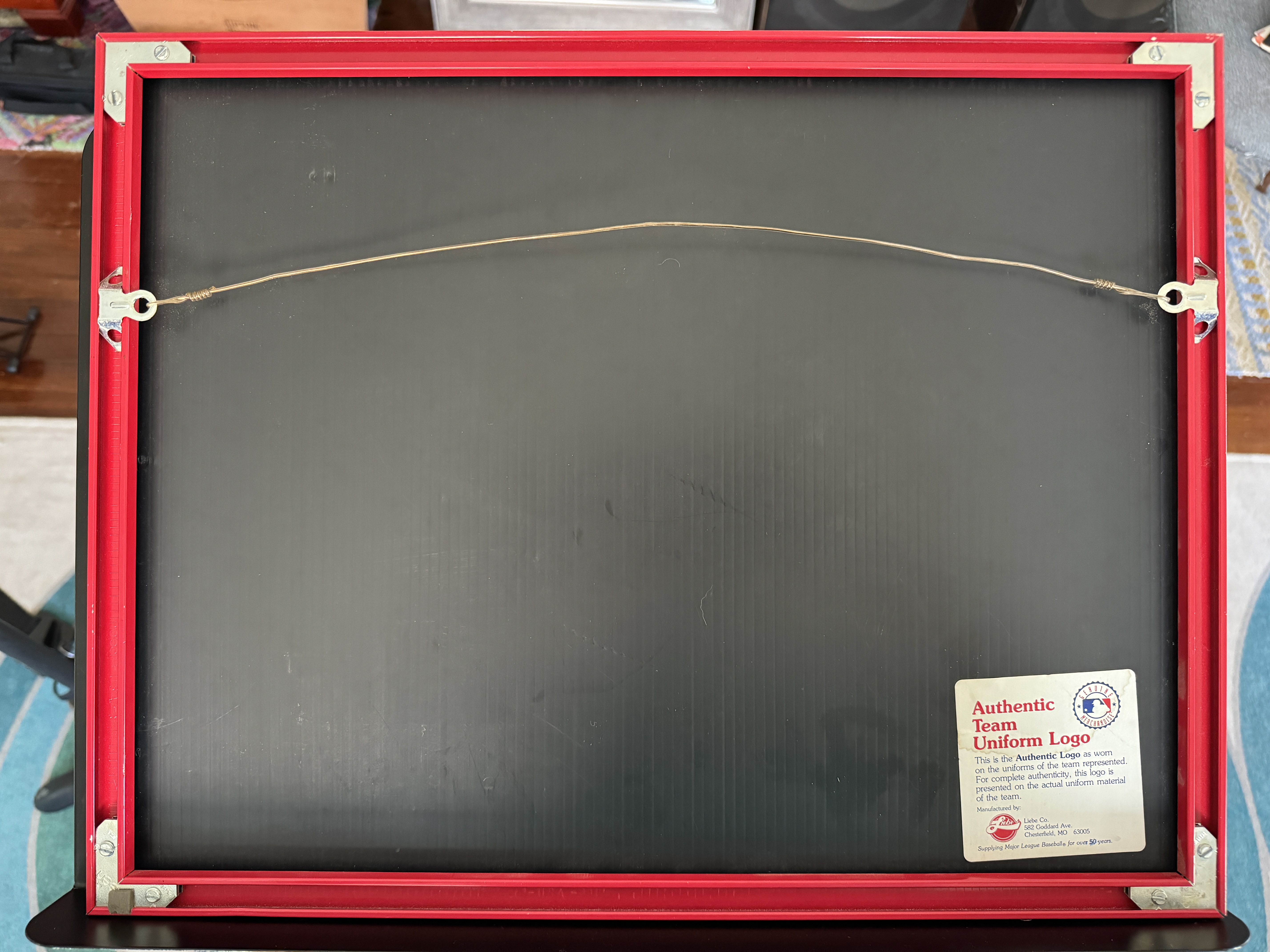 We have a set of four of these, but they are samples from Majestic from 1997 that Bill had in his office and are not framed. I could have sworn we had a similar one framed, but I was unable to locate it. I looked for photos from the original lobby in our photo database , but no luck there either. I even looked in the Lelands Busch Stadium Auction catalog with no results.