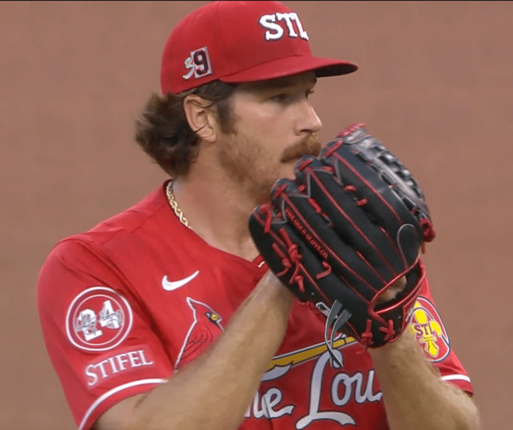 If you tuned into last night’s game, you noticed the Cardinals had patches on the sides of their caps. Those patches were the player’s numbers rendered in what looks to me like a ransom note font. While that’s about as much as I’d like to say about it, I’ll leave my opinion as well. This is a pointless gimmick that doesn’t look good, and doesn’t make sense. See screenshot from last night’s game below.