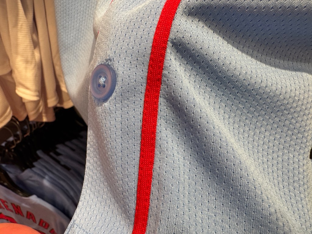 Thankfully Nike kept real braid piping on the front of the uniform, which you can see above. The photo above does a decent job of showing how that extra braid is stitched onto the jersey, as opposed to being a fake print-on. But you can get a better look at it yourself in person. I highly recommend heading down to the team store between Gates 3 and 4 at Busch Stadium. Head to the jersey section that has the authentic or elite or whatever Nike buzzword they’re using, and get your hands on it, take a close look for yourself. And while you’re down there, head over the Cardinals Museum and see some game-worn jerseys. Even though they’re behind glass, you still get a great look at the differences between 2023 jerseys and 2024 jerseys, and you’ll be able to see the differences in stitching techniques and other uniform appointments.