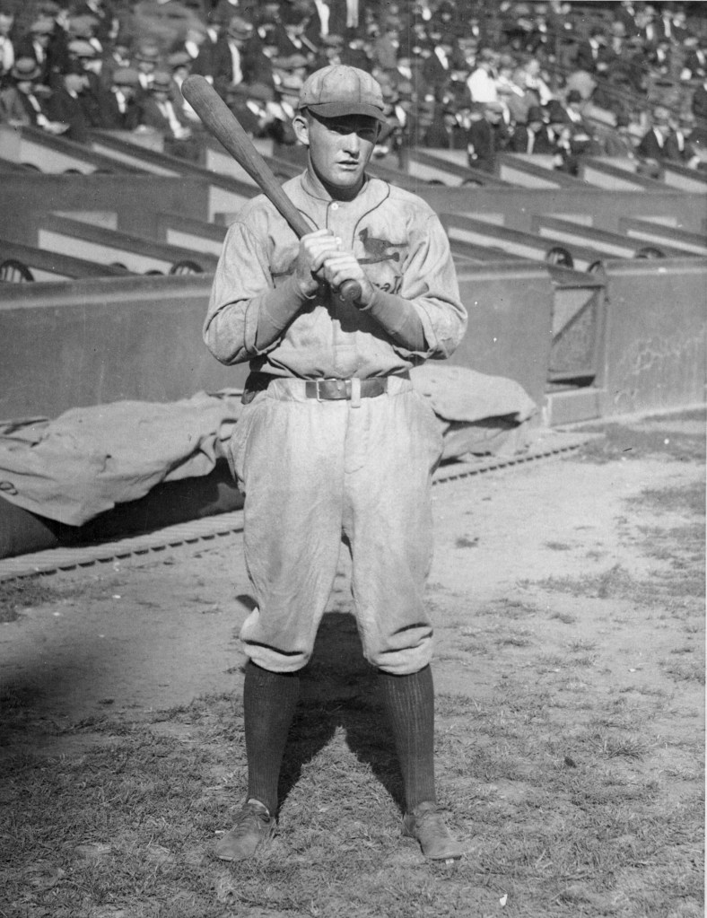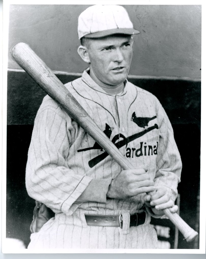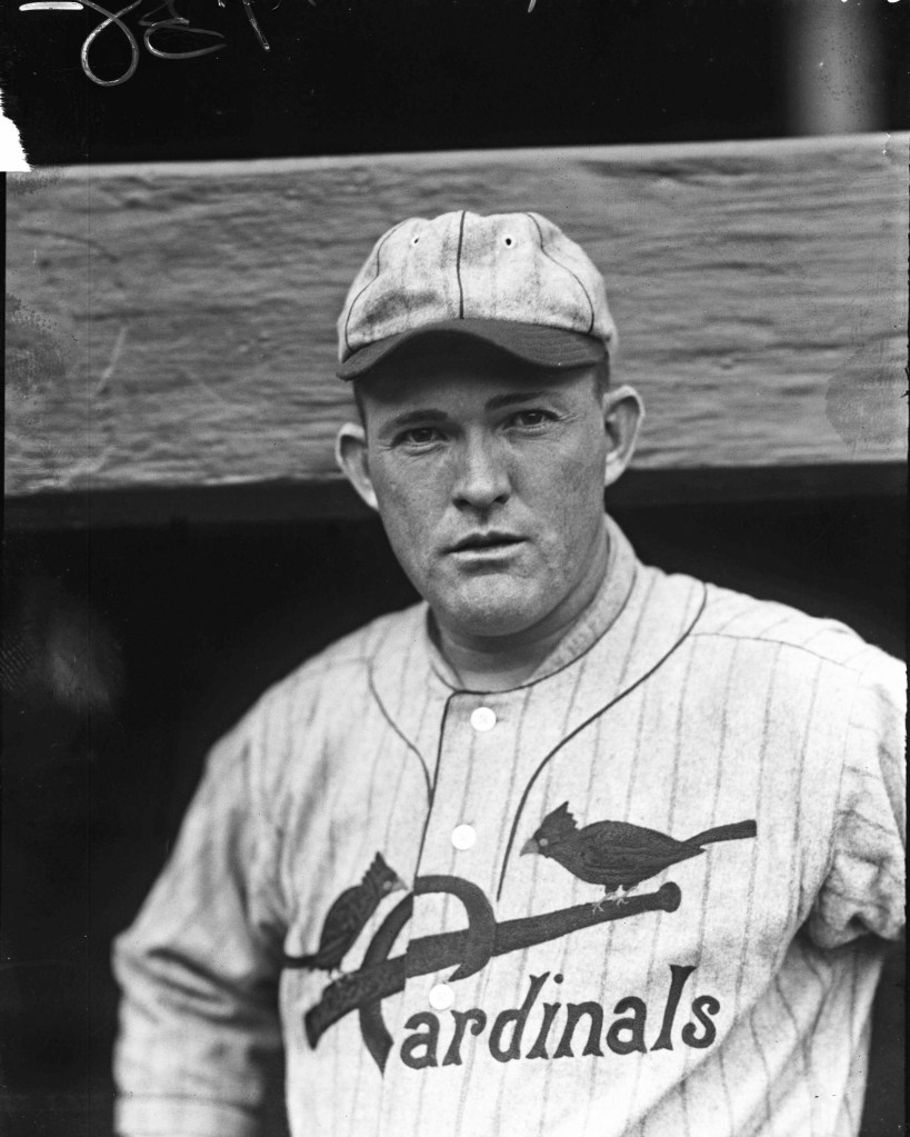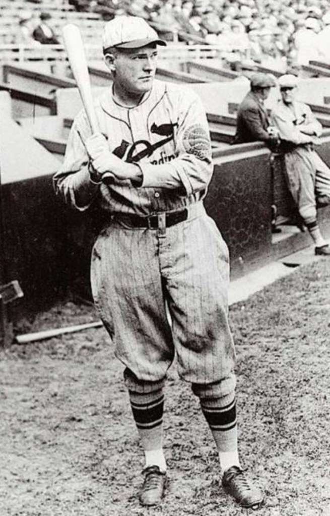 #6 is already occupied by the greatest Cardinal, and #4 is soon to be cast in bronze in the coming years. And regardless of these two numbers, it would seem the organization believes Hornsby did not wear a number long enough to be associated with a number. So instead, he is shown with an SL emblem that was worn in 1917 and 1920, both as a sleeve emblem. The SL logo is accurate to something Hornsby wore as a Cardinal. But the left field wall photo does not accurately depict him as a Cardinal. Here are some photos of Hornsby in a Cardinals uniform.