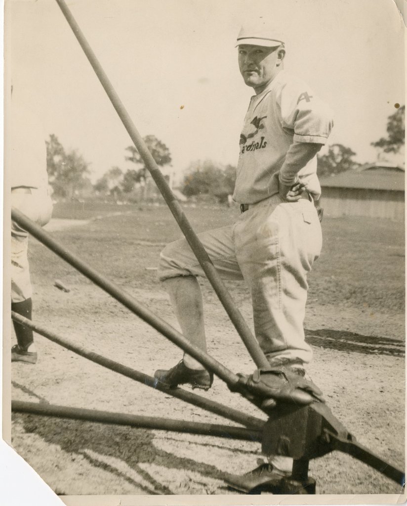 By our estimations, it looks like this was taken between the years of 1935 and 1937. Rajah played the first part of his career, 1915 through 1926, with the Cardinals before departing to other teams. He came back briefly in 1933, but then joined the American League Browns in the latter half of the 1933 season, where he played through 1937 and finished his career. This photograph, again, looks to be in the last few years of his career with the Brownies. Nice uniform! Nice photo! Not a Cardinal.