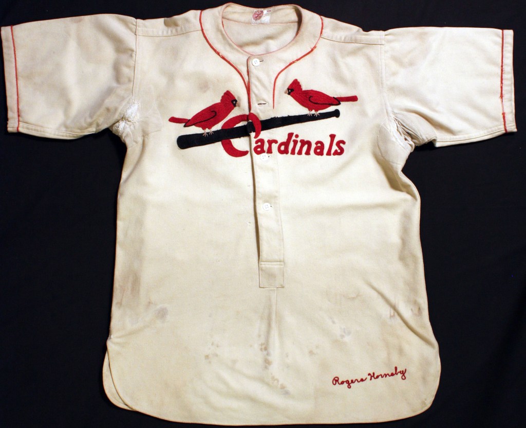 When Hornsby returned to the Cardinals for the first half of 1933, he wore #4. And the Cardinals museum has a 1933 Hornsby jersey in their collection. Take a look, click images to enlarge.