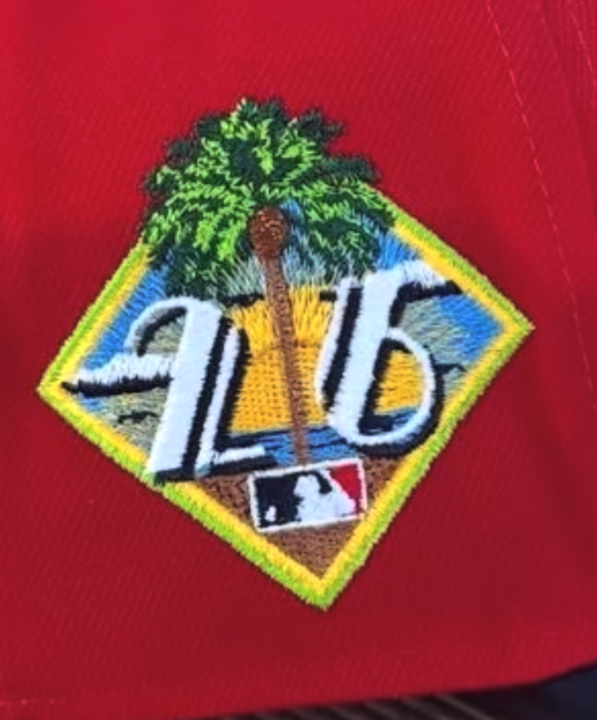 The patch on the side does not say L B, it says 2 6, and has a palm tree between the numbers, all in front of a beach and sun on the horizon? Many more photos can be seen on the Cardinals Instagram of players wearing the new caps.