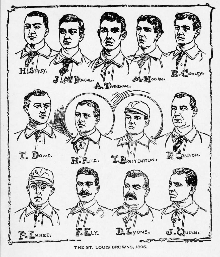 1895 is reliant on research from Craig Brown at http://www.threadsofourgame.com and his many diggers. The St. Louis lettering seen in these photographs would also be worn through 1898.