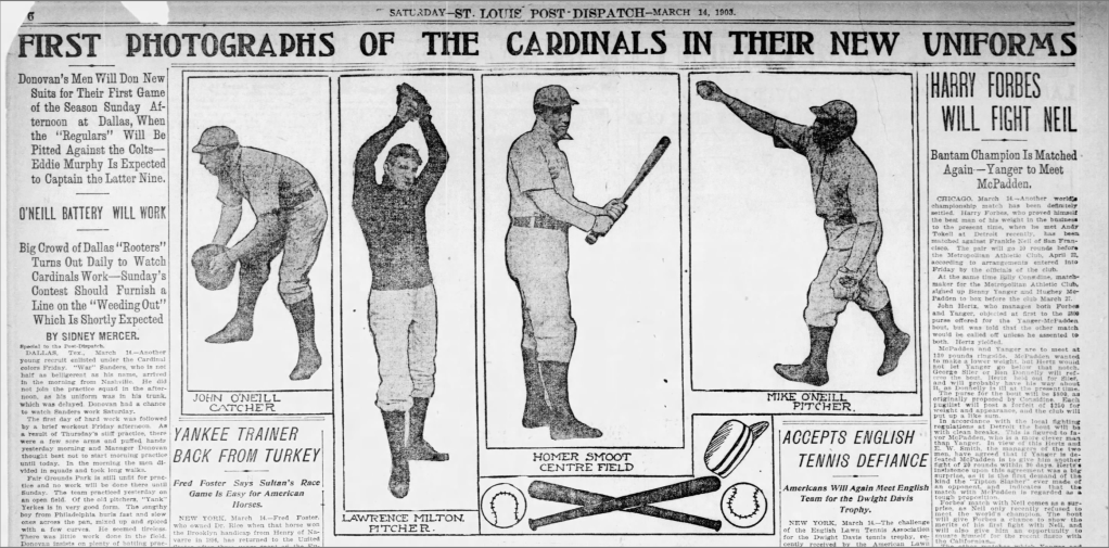 That’s Spike Shannon on the left in the Smoot, Barclay photo and Ed Konetchy didn’t join the Cardinals until 1907.