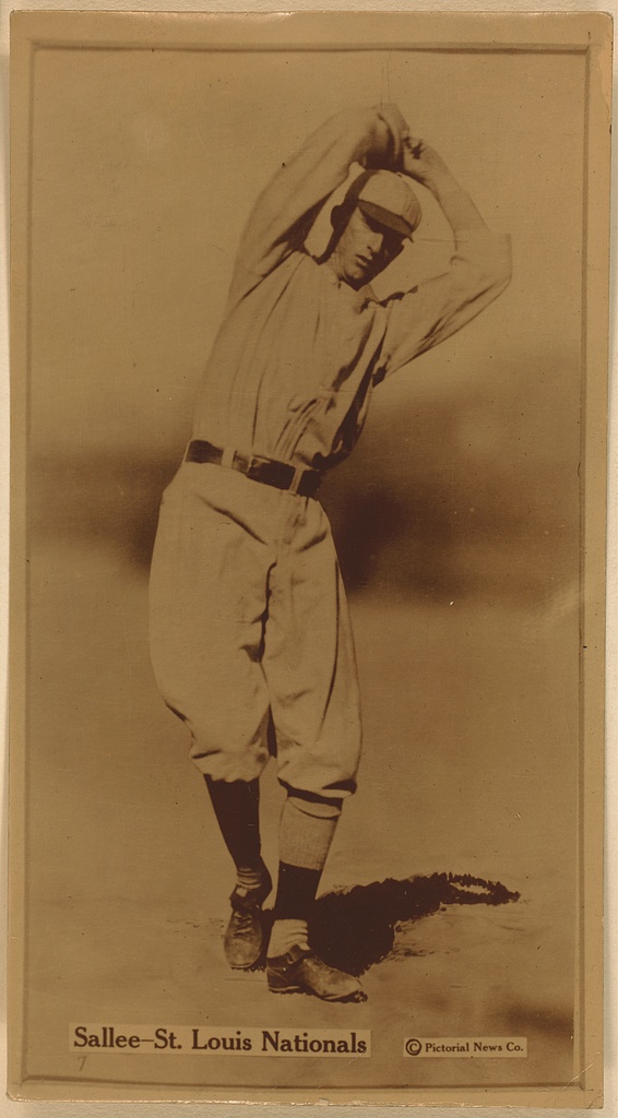 1909 is the first season we observed the team wearing stirrup socks. Players of this era mistakenly believed that they were at risk of blood poisoning from the colored dye in their socks if they got spiked in the shins by opposing sliding players. As a precaution they wore white sanitary socks underneath the colored socks. But wearing two pairs of socks didn’t fit inside their cleats, thus the stirrup sock was invented, a baseball creation that still endures to this day.