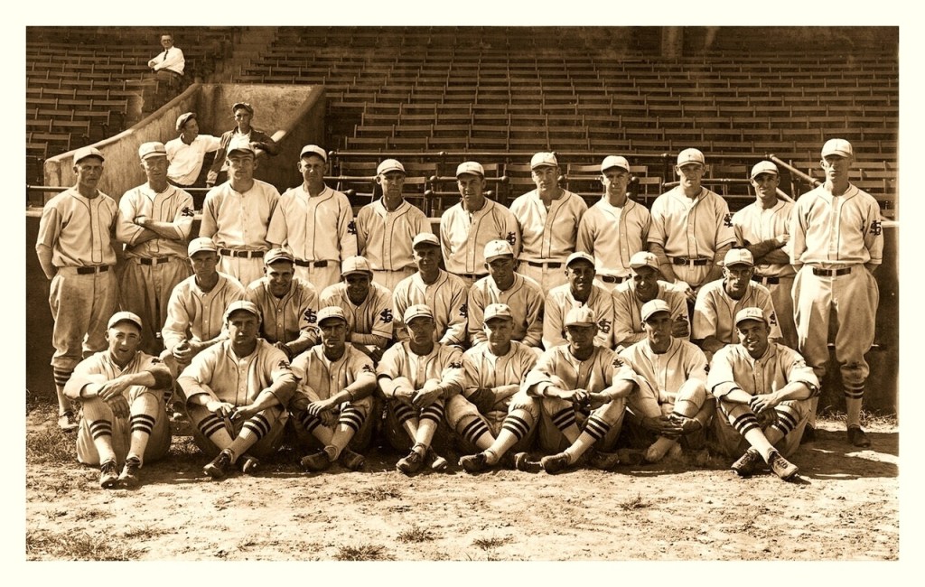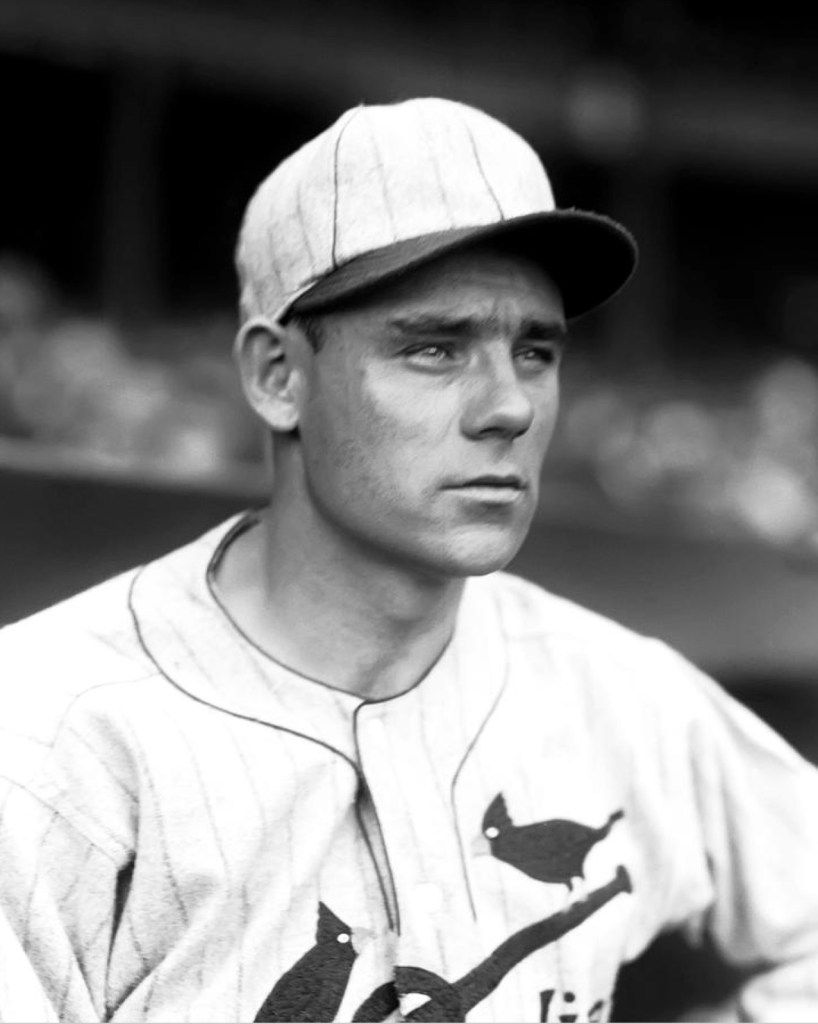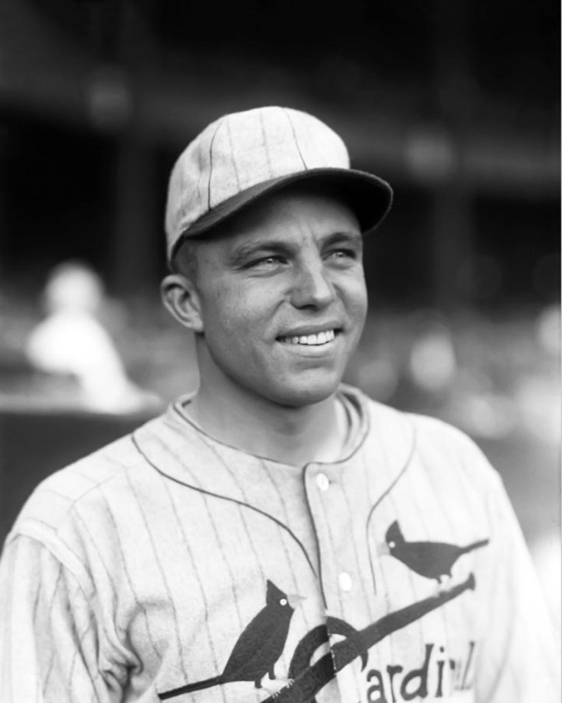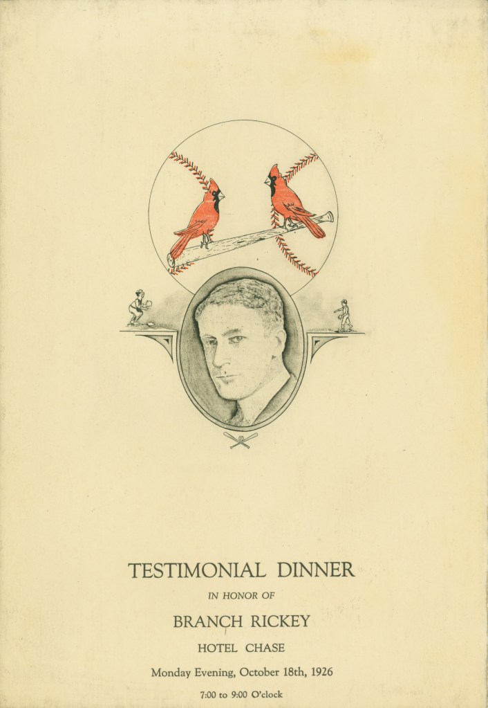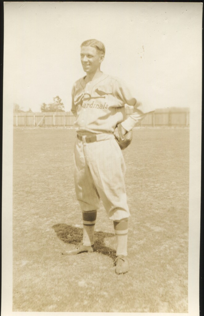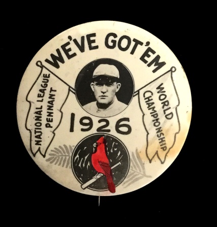 In 1926 the Cardinals home uniform went to a more “old school” look. The only identifying mark was what we refer to as the STM logo, a Blackletter or Old English emblem that made the L look like an M. The Cardinals have a physical sample of this jersey displayed in their museum.