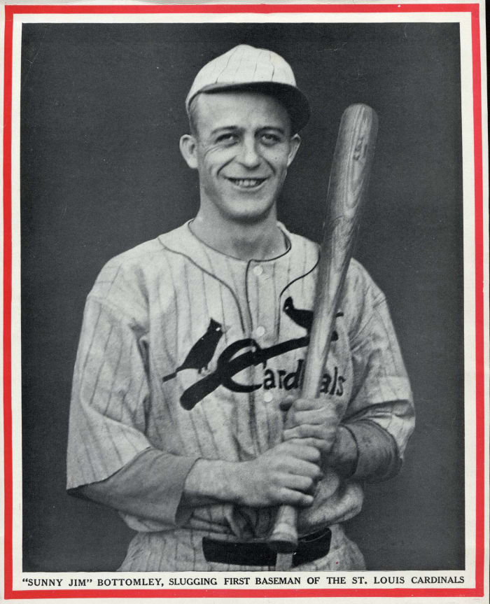 The principal change in the uniforms for this season is in the Cardinals home suits. The familiar embroidered Cardinals birds and bat have been omitted from the white uniforms this year and in their place a small St. Louis monogram on the left sleeve is the only decoration. The stockings are new and will show a plain white background with three narrow cardinal stripes just above the ankle. Otherwise there is no change in the suits.