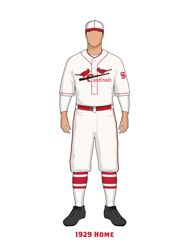 In 1929, Sainz maintained the uniform contract and would produce the Cardinals uniforms for just one season. We think the same Birds on the Bat template from the ’28 Series was used for the 1929 jerseys, however the birds were rendered rounder and fatter.