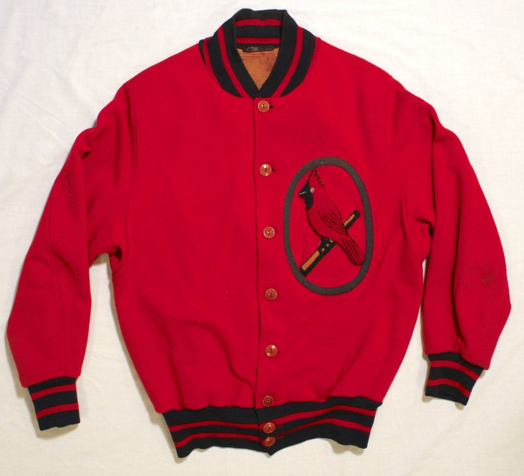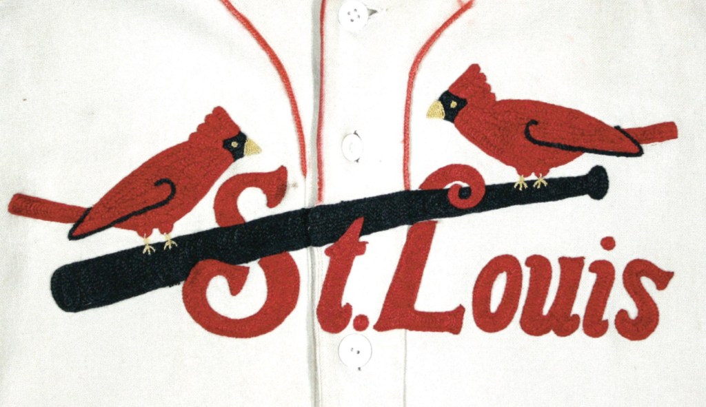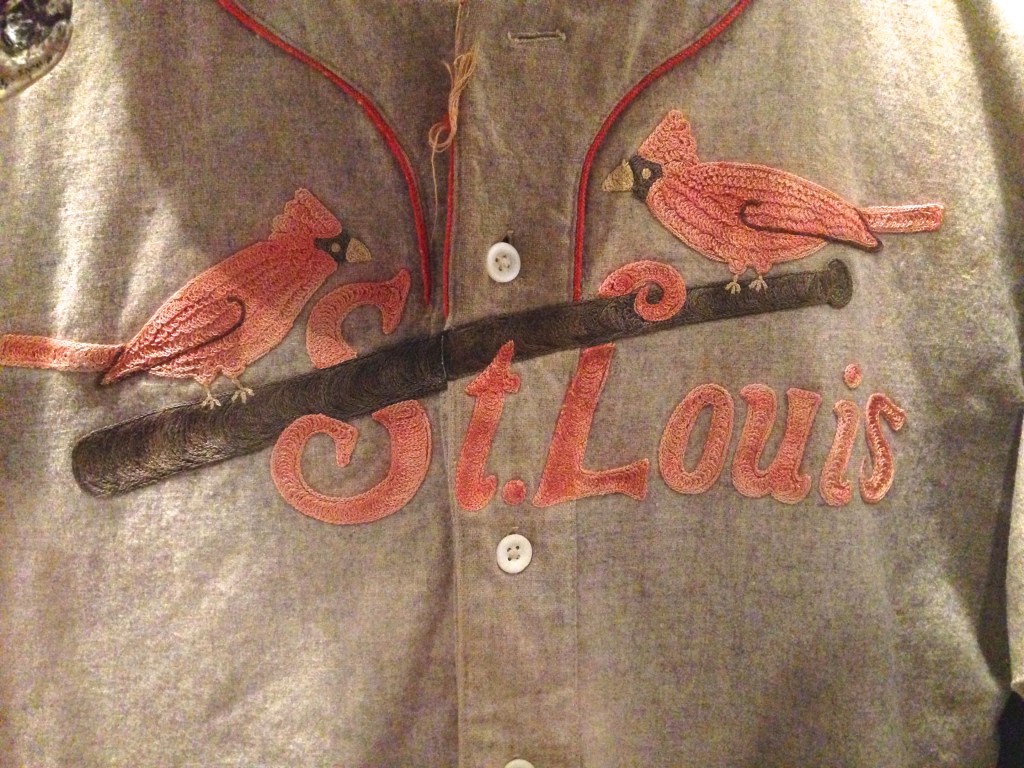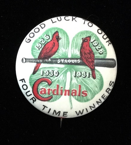 The Cardinals returned to the World Series in 1931, and wore the same uniform design from the ’31 regular season, but with new socks. The socks were white with a thick red stripe near the top. Physical samples of this jersey show a green four leaf clover was stitched into the shirt tails of the World Series jerseys.