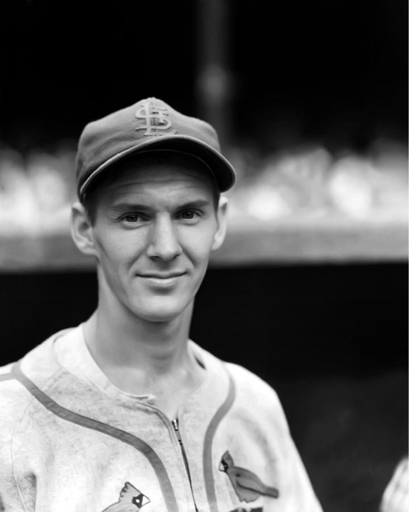 The Cardinals 1940 uniforms are a combination of their old clothes, as well as the Reds and Cubs’. The Cards have most of their old trimmings, but their caps of blue with red peaks are just about “carbon copies” of the Cincinnati caps of other years. The Cardinal uniforms also have braid along the shoulders, down the sleeves and trousers similar to those of the Cubs and Browns. Yesterday the Cards had on their gray traveling uniforms. The Browns wore their white home uniform.