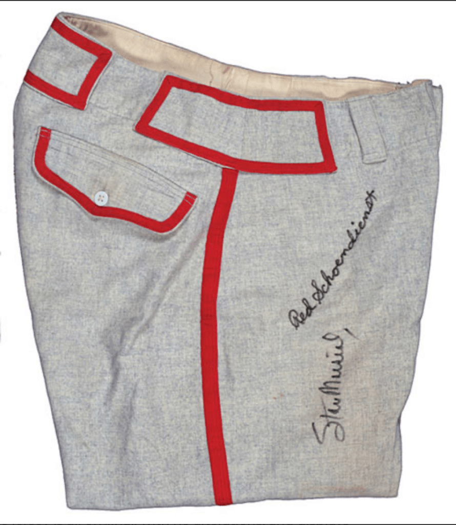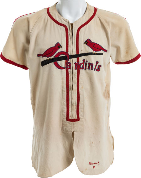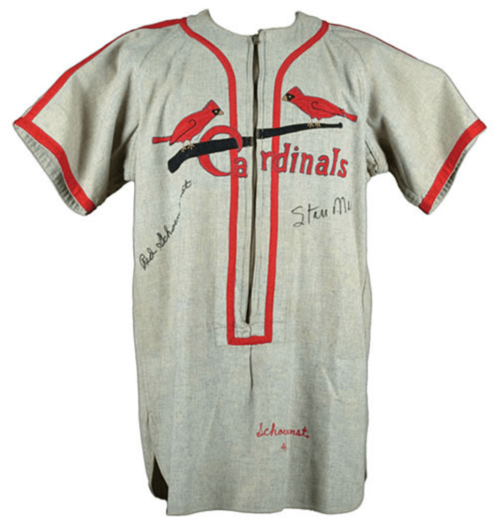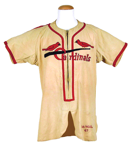 In 1946, the Cardinals toyed with the idea of wearing uniforms made from shiny satin material. With the rise of night games, the Cardinals wanted to be better seen on the field. While the Cardinals had already bought the uniforms, manager Eddie Dyer decided not to wear the uniforms. Luckily one has survived.