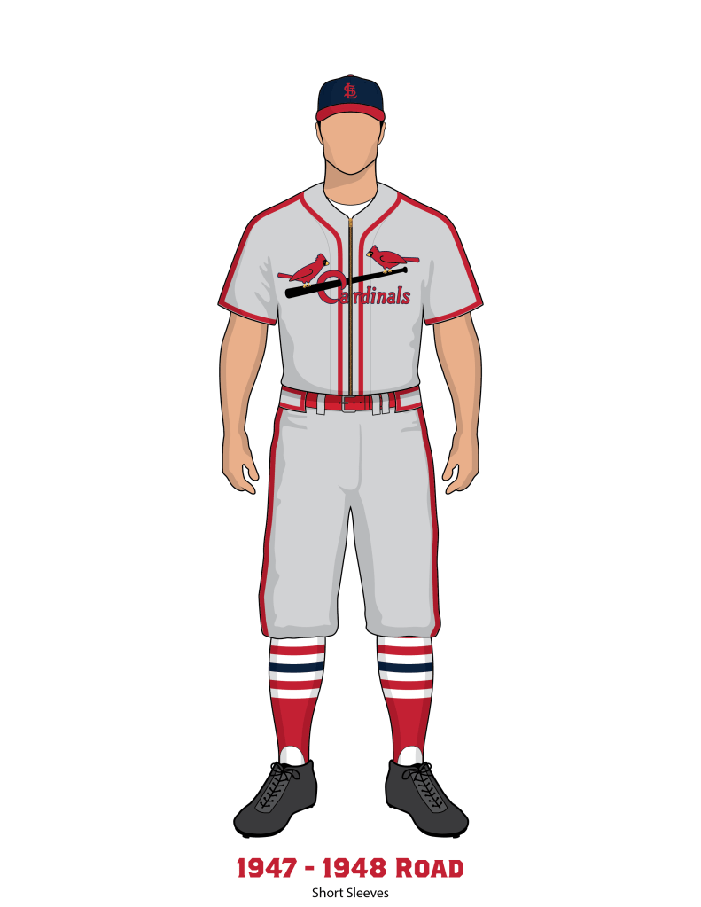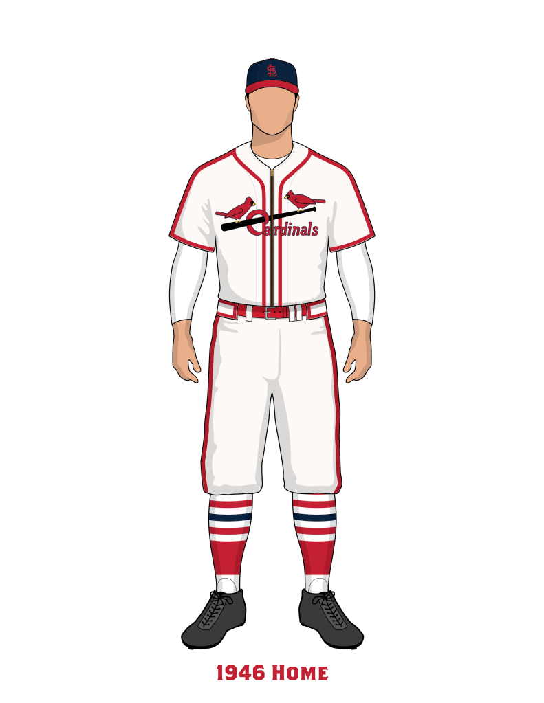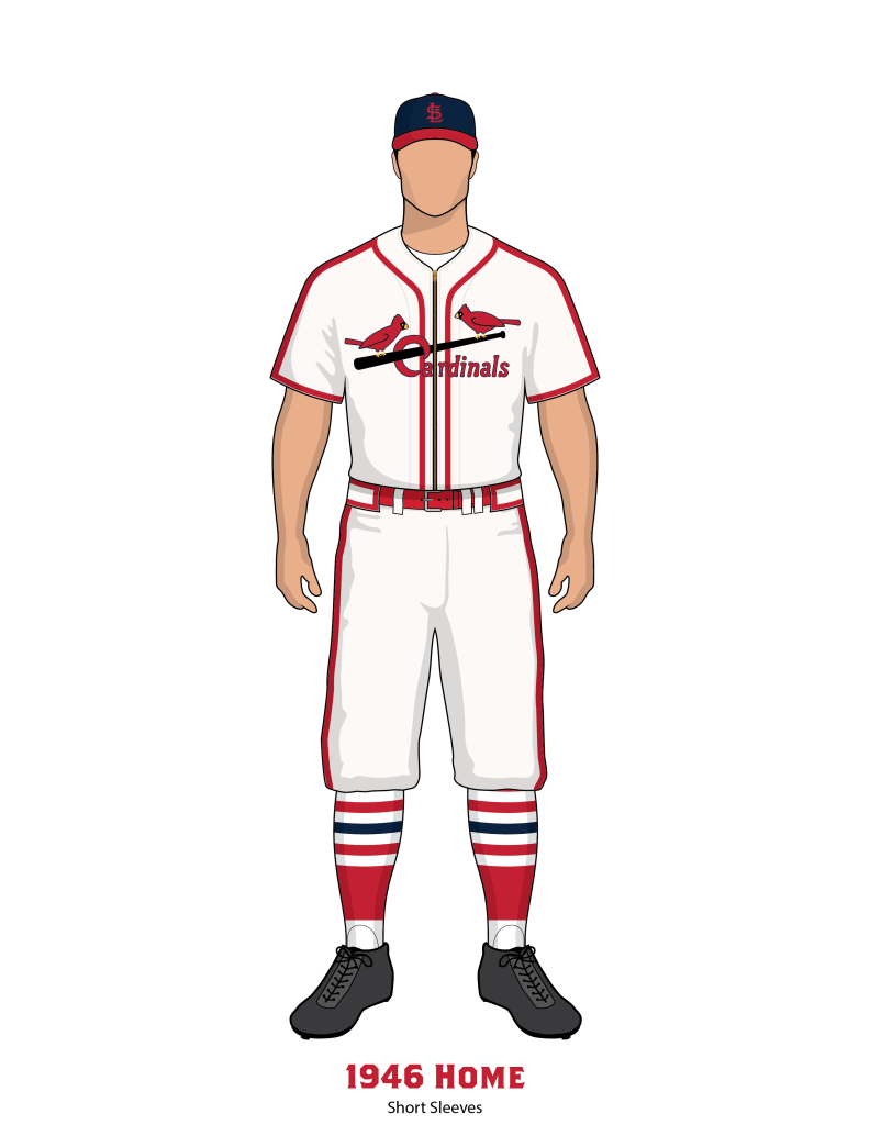 In 1946 the Cardinals returned to wearing zippered jerseys and the WW2 patch was removed from the uniform.