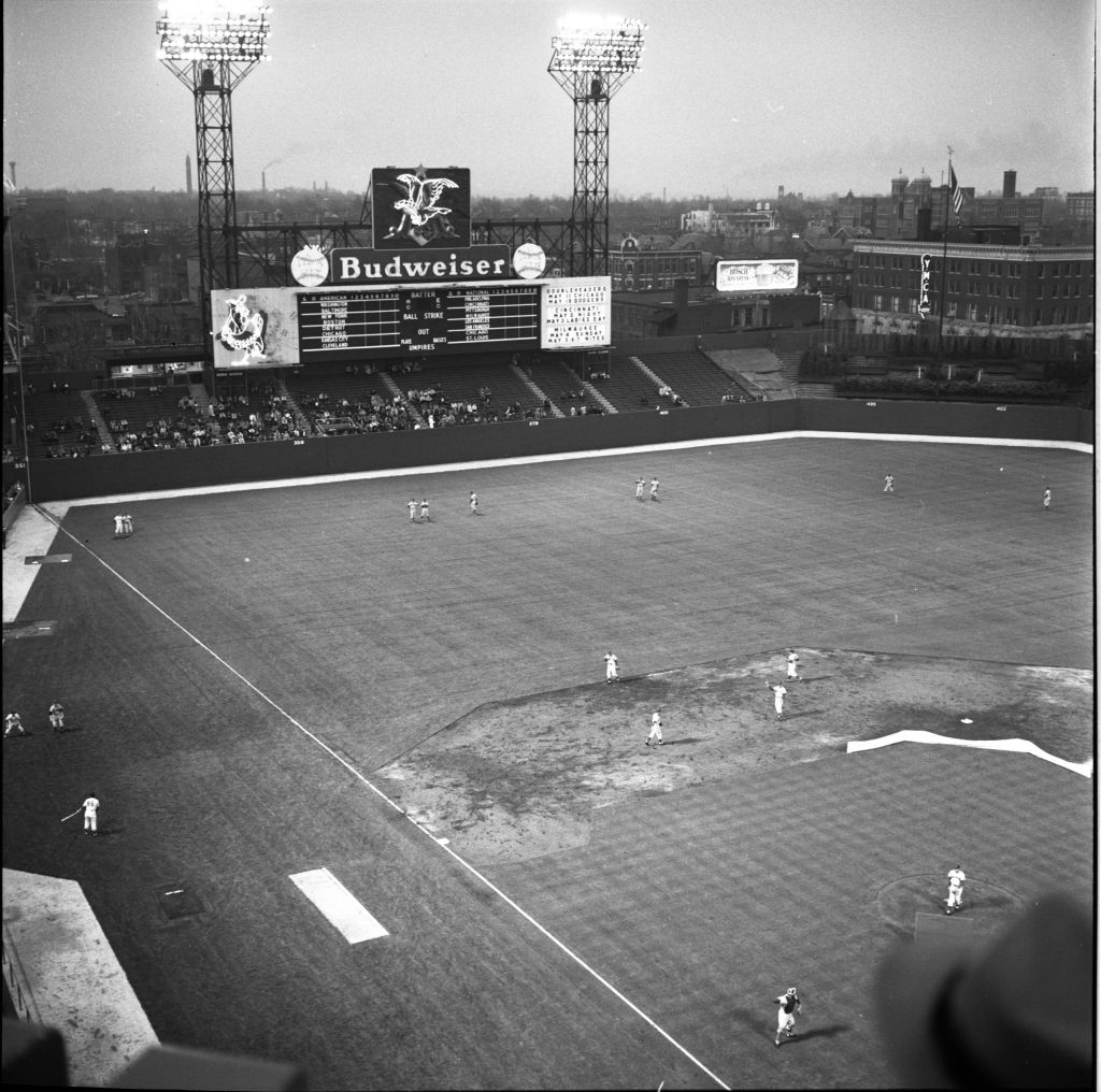 The picture of Sportsman’s Park shown above was from either April 15, or April 17, 1958 based on the scoreboard and out of town games.