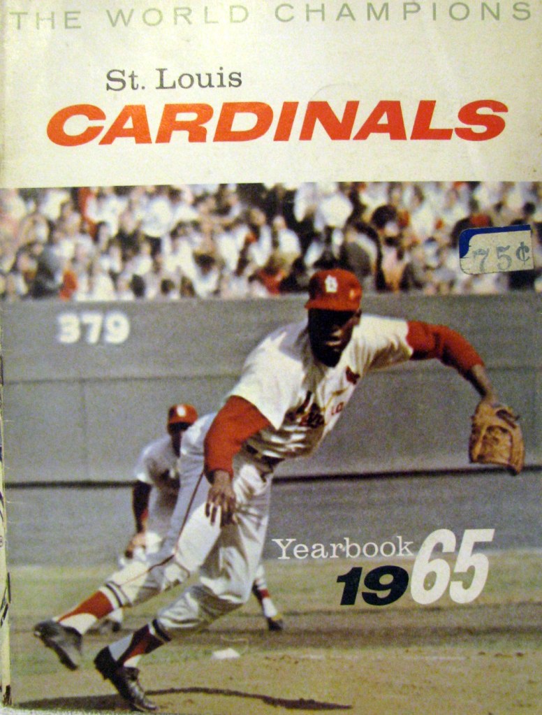 The 1965 Cardinals kept the same uniforms and caps from the ’64 Series, but stopped wearing their navy blue caps. Instead the team would wear red caps with a white STL for both home and road.