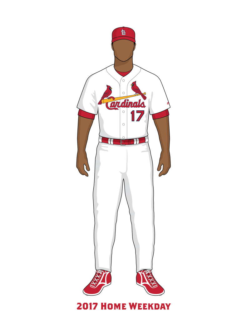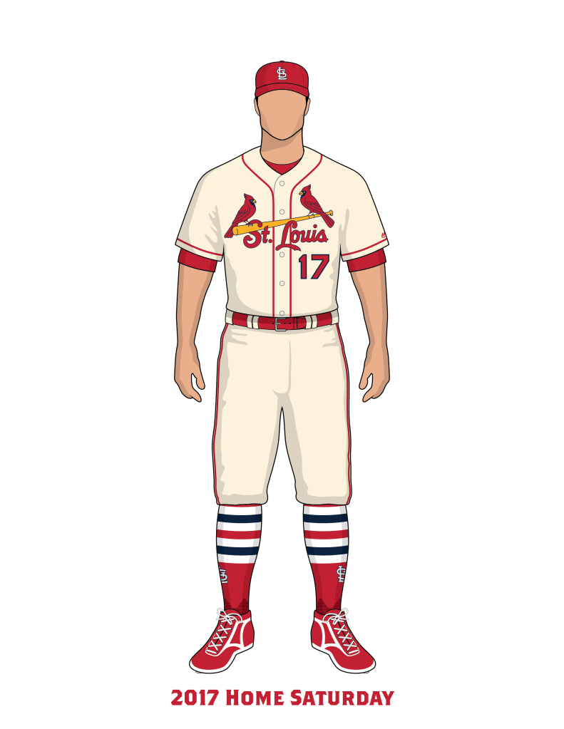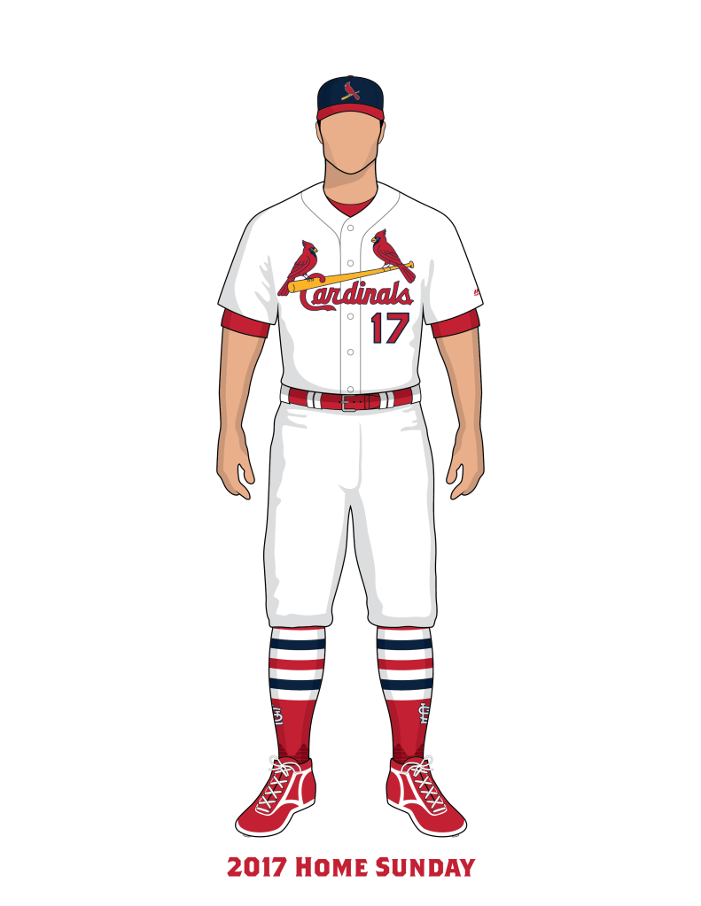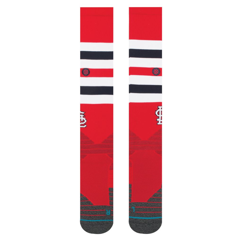 In 2017 Stance took over the contract to make socks for all MLB teams. The new socks added more design elements, with a darker red ankle portion thing, and STL logos on both legs facing outward. Stance would also join in on the many holiday uniform shenanigans.