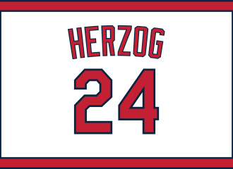 Whitey Herzog wore the Cardinals uniform as a manger from 1980-1990. The White Rat’s number was officially retired in 2010. Whitey’s career is most identified with the uniforms of the 1980s when he lead the Cardinals to three World Series appearances.