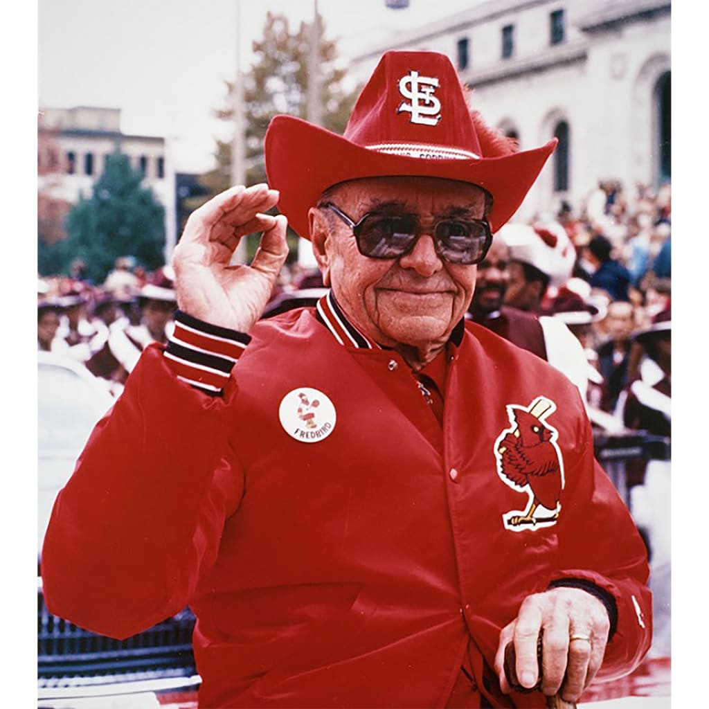 August Busch Jr was the team’s owner from 1953 through 1996, the longest reign in Cardinals history. Gussie was apart of numerous uniform changes throughout his ownership, and could be seen on occasion wearing a Cardinals jersey. Gussie is most remembered wearing his red Cardinals cowboy hat. In 1984 the Cardinals officially retired number 85, with 85 being Gussie’s age at the time.