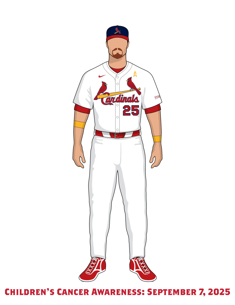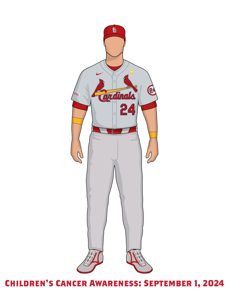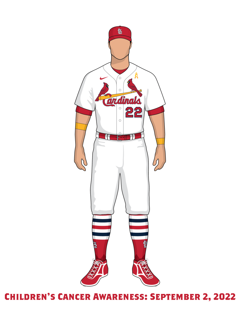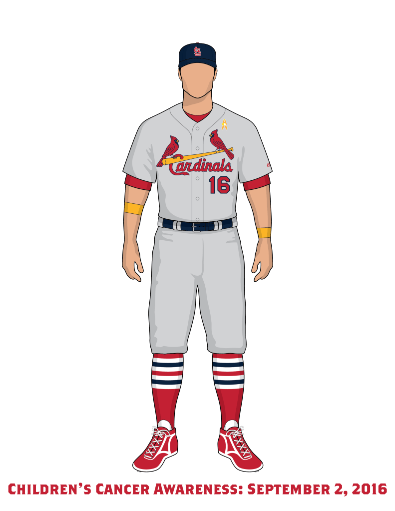 Beginning in 2016, the Cardinals wear bright yellow armbands and gear with their uniforms and a yellow ribbon on the chest to raise awareness for children’s cancer research.