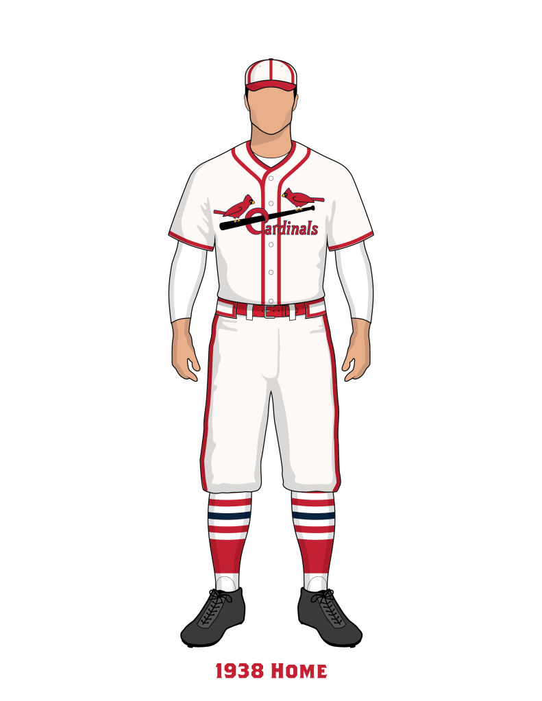 The Pepper Martin jersey above is clearly a 1938 based on the piping pattern and buttoned uniform, however for some reason the 1939 patch has been added to it. This jersey might have also been worn in 1939.