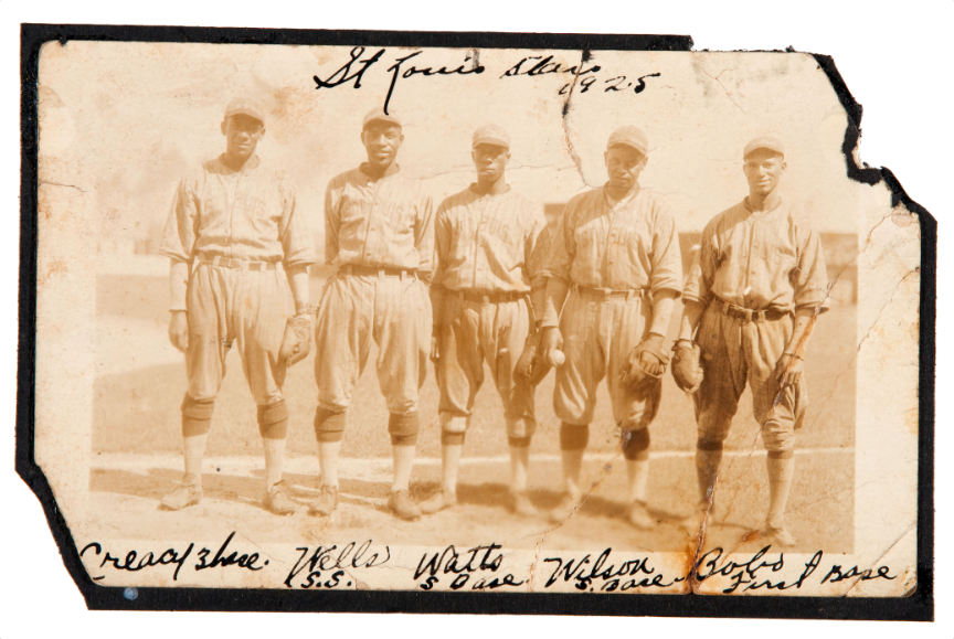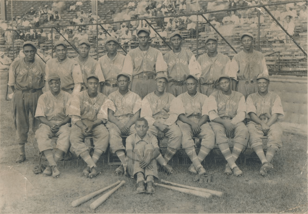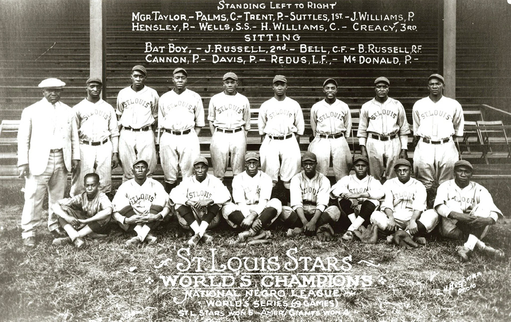 Throughout the years the Cardinals have worn St. Louis Negro League inspired uniforms paying homage to the the all black league before integration. It is important to note that these uniforms use inspiration and elements from the St. Louis Negro League uniforms, but do not fully reflect what the those teams actually wore. A main discrepancy is the STL emblem on the cap. Photography shows the St. Louis Negro League teams only wore a cap emblem in a small number of seasons. The STL we see worn on these throwbacks is a modern contrivance, and is font called Windsor. Please see historical photography below.